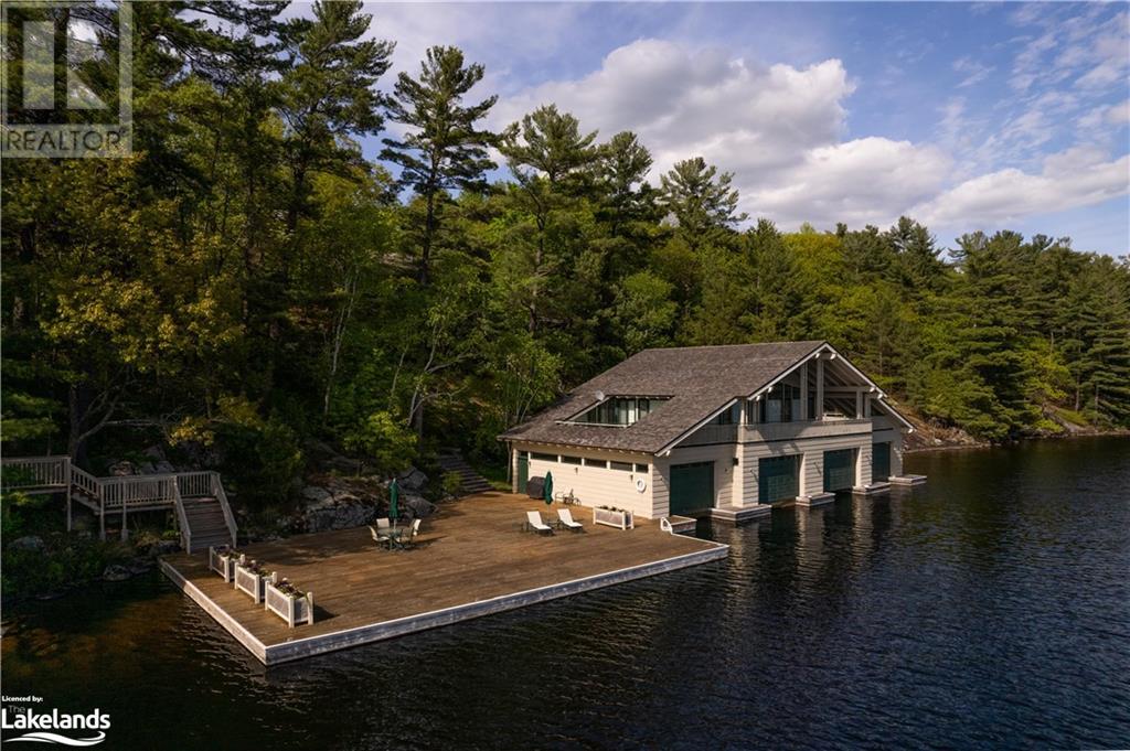 This extraordinary property on Lake Muskoka presents a unique and valuable opportunity to acquire a prime location with oversized boathouse. Situated on a generous 3.5-acre lot with an impressive 625 feet of lake frontage, providing expansive south exposure. Prominently placed along the shoreline is this immense 4 slip two storey boathouse. Upstairs, there are two bedrooms and one bathroom, while the lower level features two full bathrooms and a walk-through sauna. The primary boathouse bedroom boasts a panoramic lake view, creating an unforgettable sight to wake up to each morning. The boathouse also includes a vast oversized dock, making it the perfect location for entertaining guests. Additionally, the property features a charming three-bedroom, three-bathroom cottage. This delightful retreat is designed as the perfect compliment to the waterfront atmosphere, featuring a open-concept living room, grand stone fireplace, and a kitchen with patio featuring stunning elevated lake views. The exterior of the cottage amplifies the exquisite custom stone landscaping and craftmanship throughout. The cottage is equipped with a two-bay attached garage, providing ample storage space. This prestigious property is conveniently situated only 10 minutes away from Bracebridge and 20 minutes from Port Carling. Combining accessibility with its distinguished Lake Muskoka setting, this rare offering presents incredible development potential to establish a lasting legacy on this prestigious sunset point on Lake Muskoka. (id:9582)